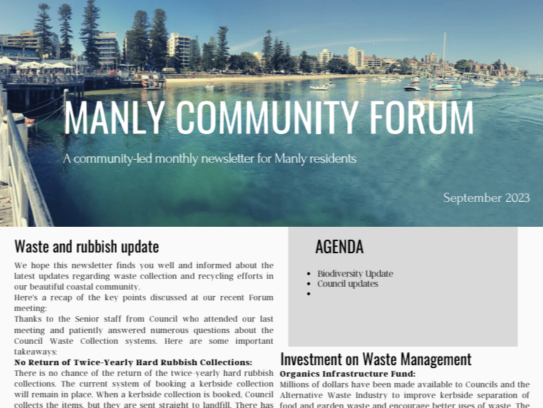 Manly Community Forum’s September 2023 Newsletter -MCFNewsletterSep23